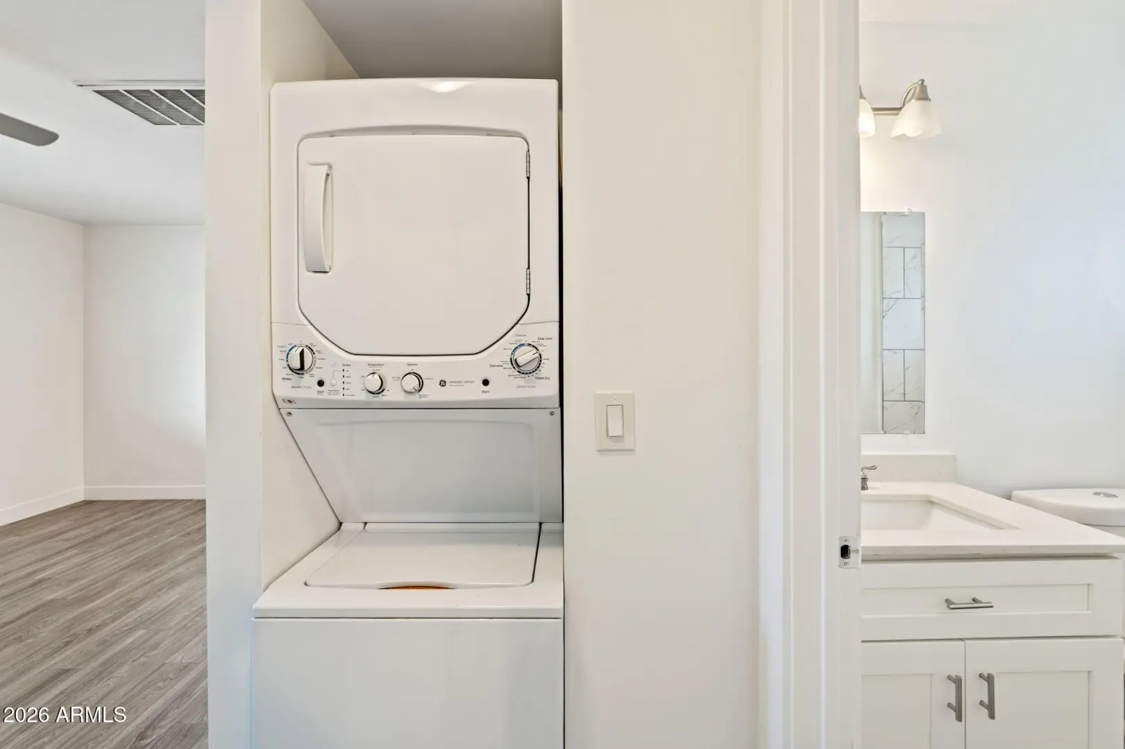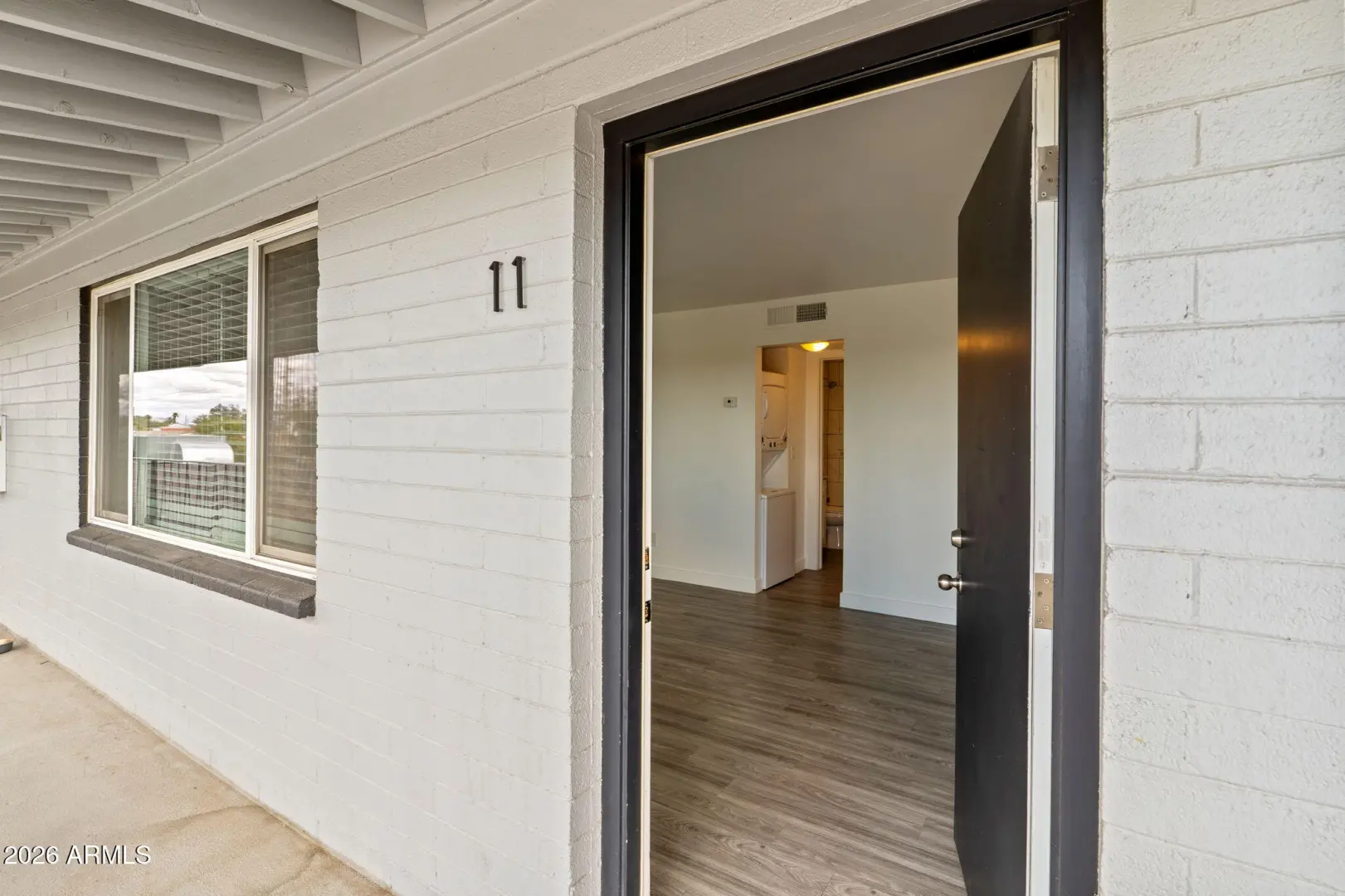 Beautifully updated 1-bedroom, 1-bath unit located within a gated community. This stylish unit features white shaker cabinetry, quartz countertops, stainless steel appliances, and no carpet throughout. The bathroom offers a tiled shower/tub combination, and the well-designed layout provides comfortable and functional living. Stackable washer and dryer conveniently located in-unit. Community amenities include a gated front entry, fenced pool, and BBQ area perfect for relaxing or entertaining. RUBS utility fee of $80/month covers water, sewer, gas, and trash; tenant responsible for electricity directly through APS.
