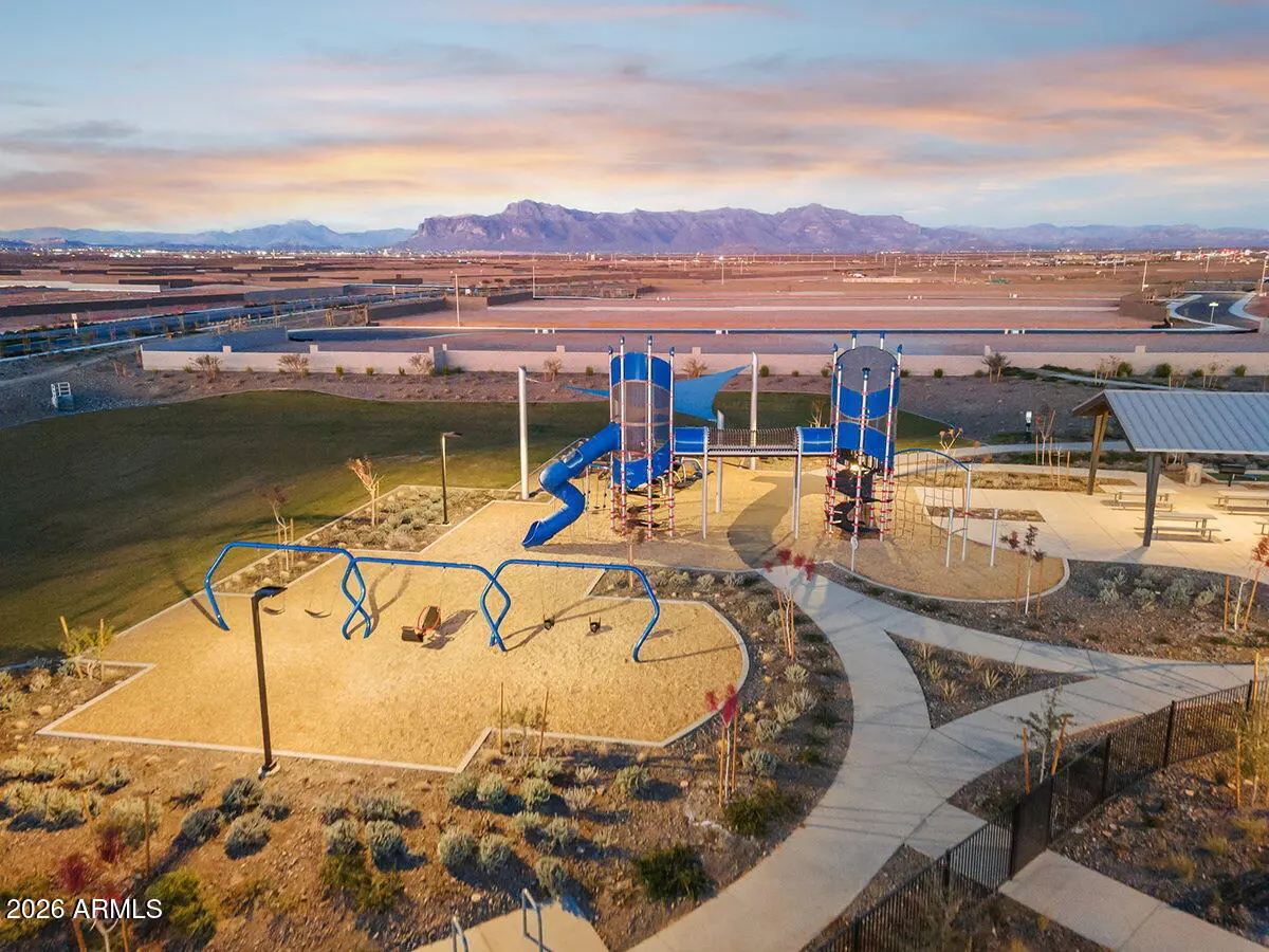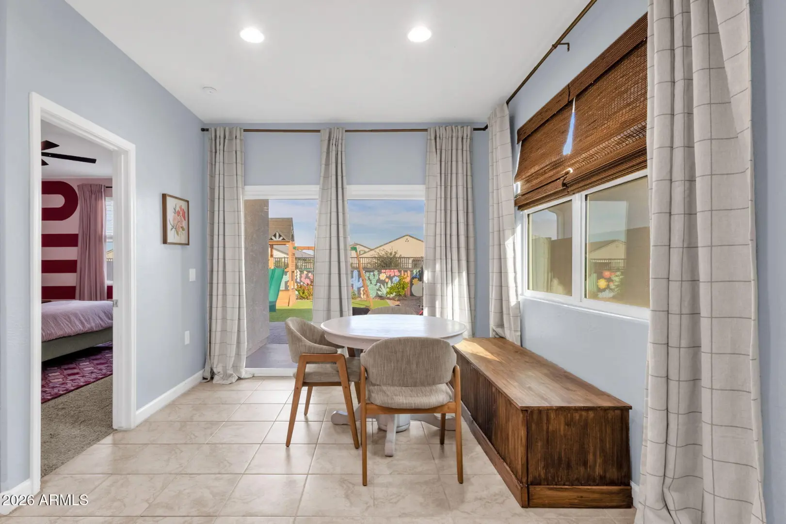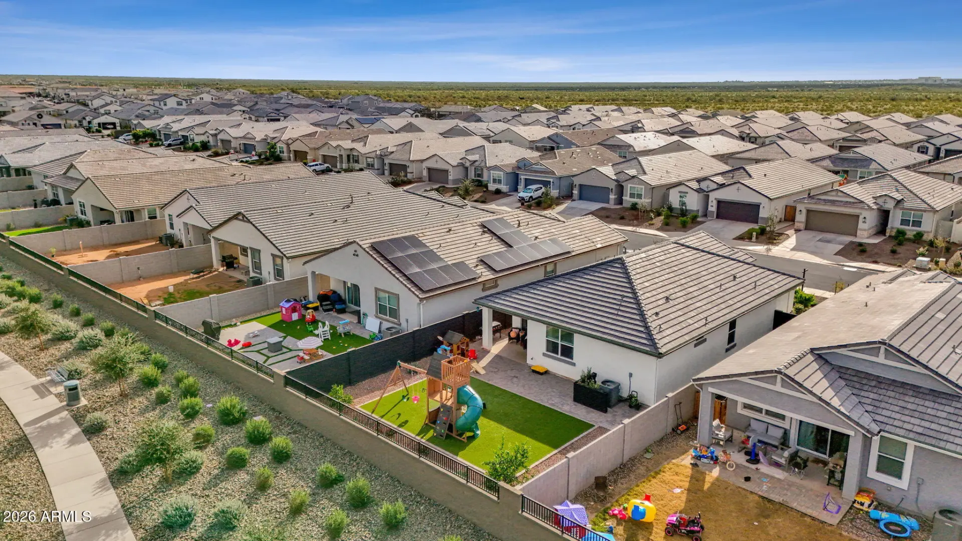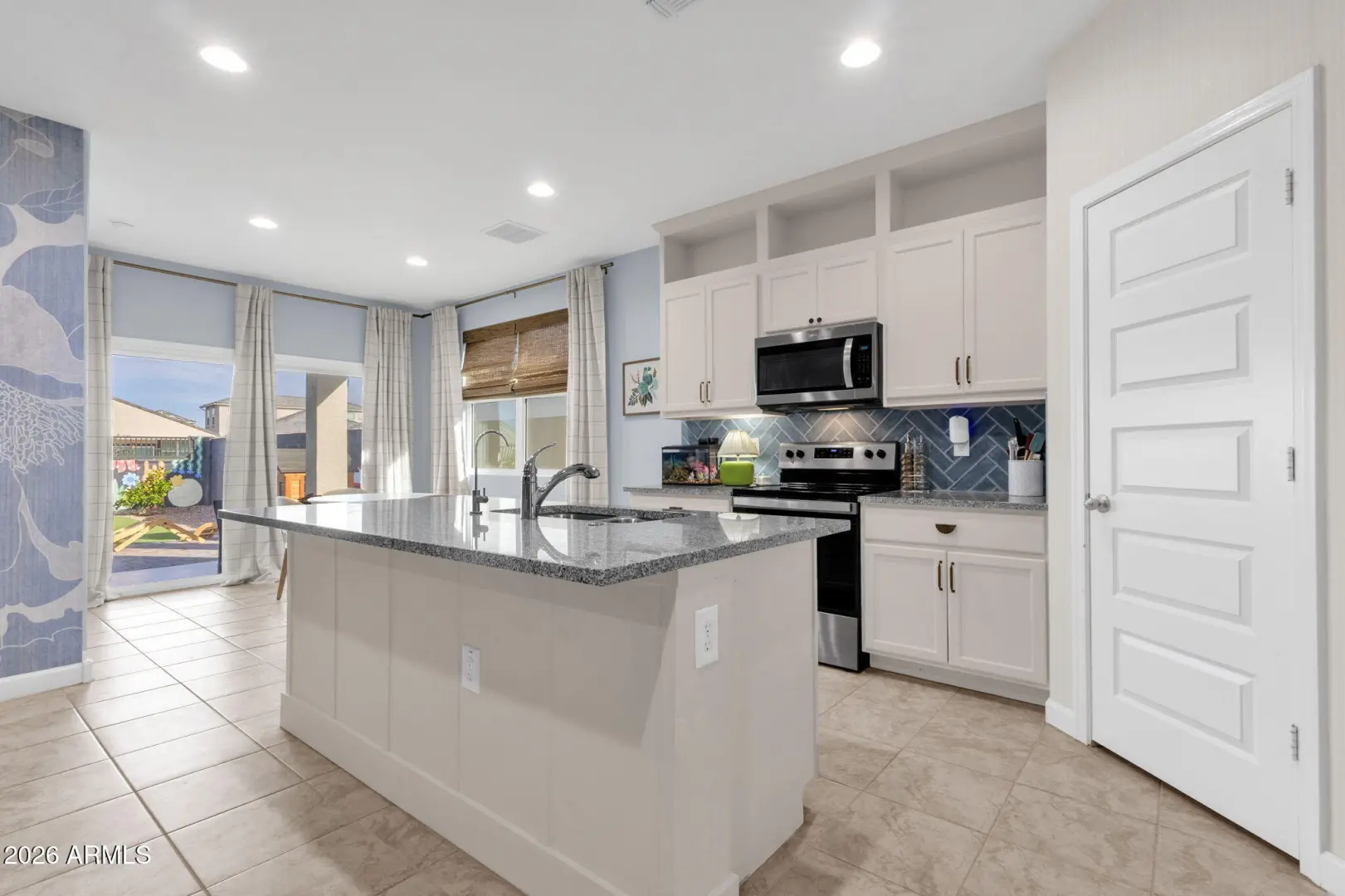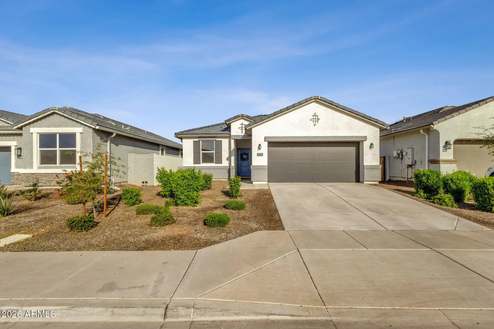 Better Than New! Built in 2023 & completely move-in ready, this highly upgraded 3 bed, 2 bath home offers everyday comfort in this sought-after community. No neighbors directly behind you! The open-concept floor plan features a chef-inspired kitchen w/stainless steel appliances, a center island, extended custom cabinetry and modern backsplash, plus a dedicated dining area, perfect for entertaining. The spacious living room showcases a custom media wall, creating a stylish gathering space. Numerous upgrades include custom interior paint, guest room day bed/built-in, added closet and laundry organization. The dream garage stands out with RaceDeck flooring, custom paint, and mounted storage. Step outside to a beautifully landscaped backyard w/an extended patio, custom desert mural, scenic