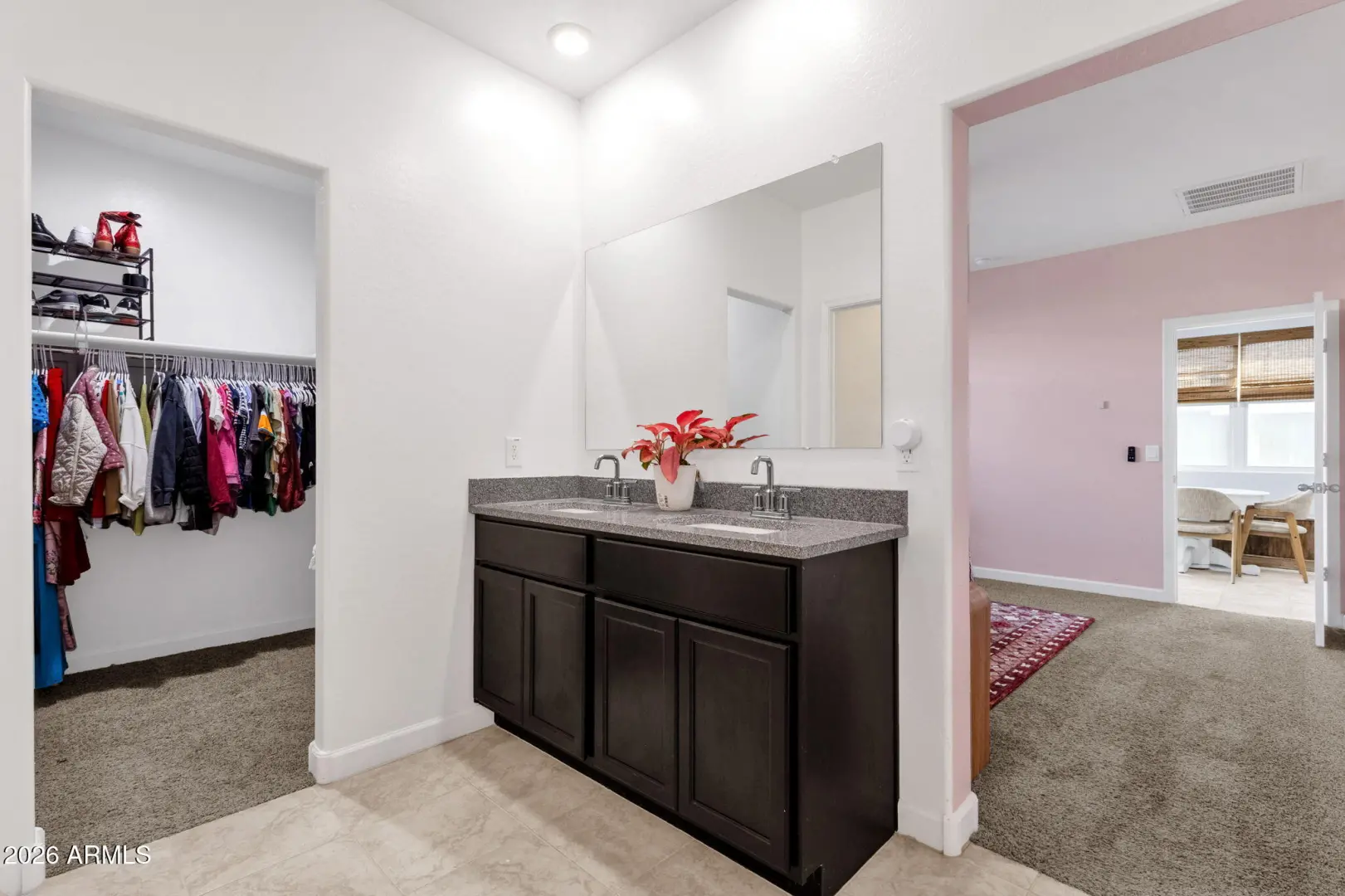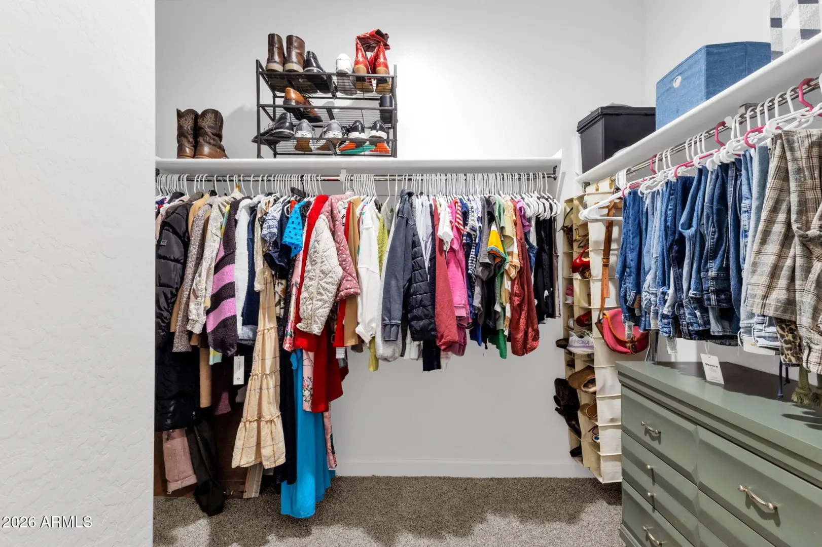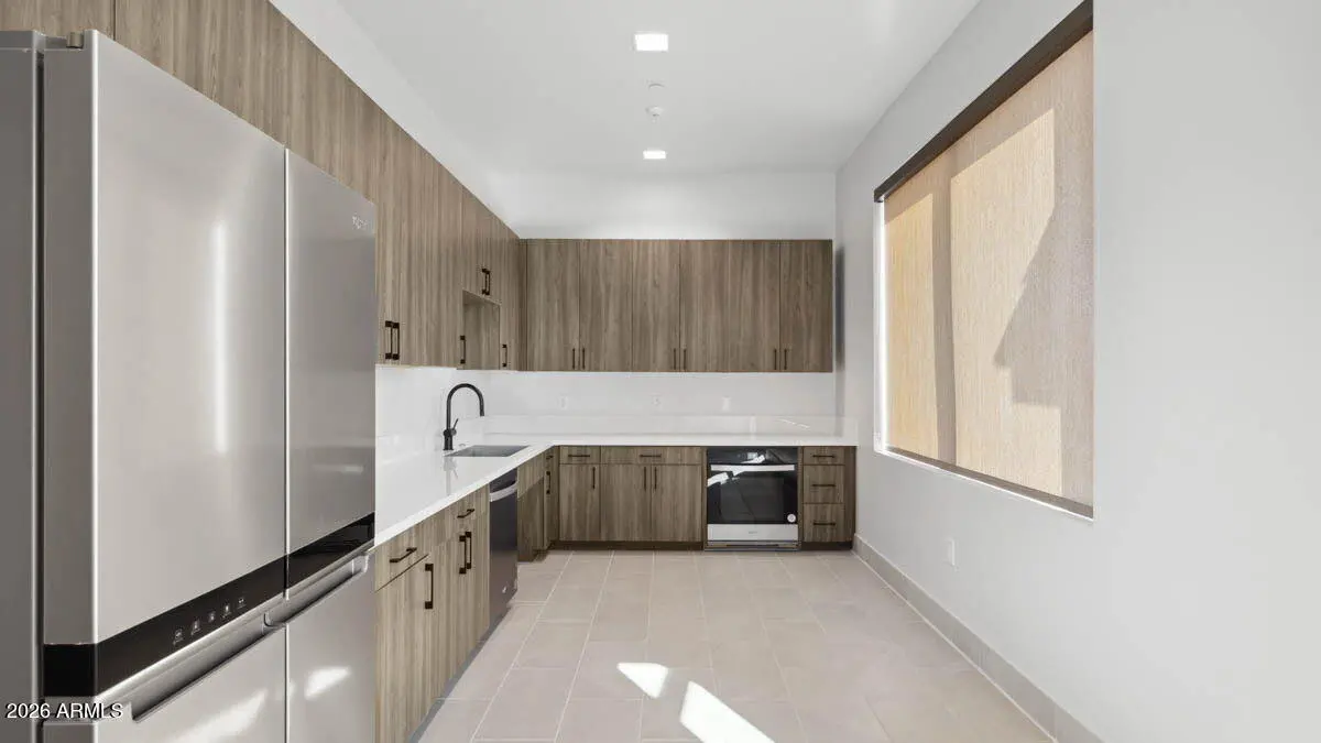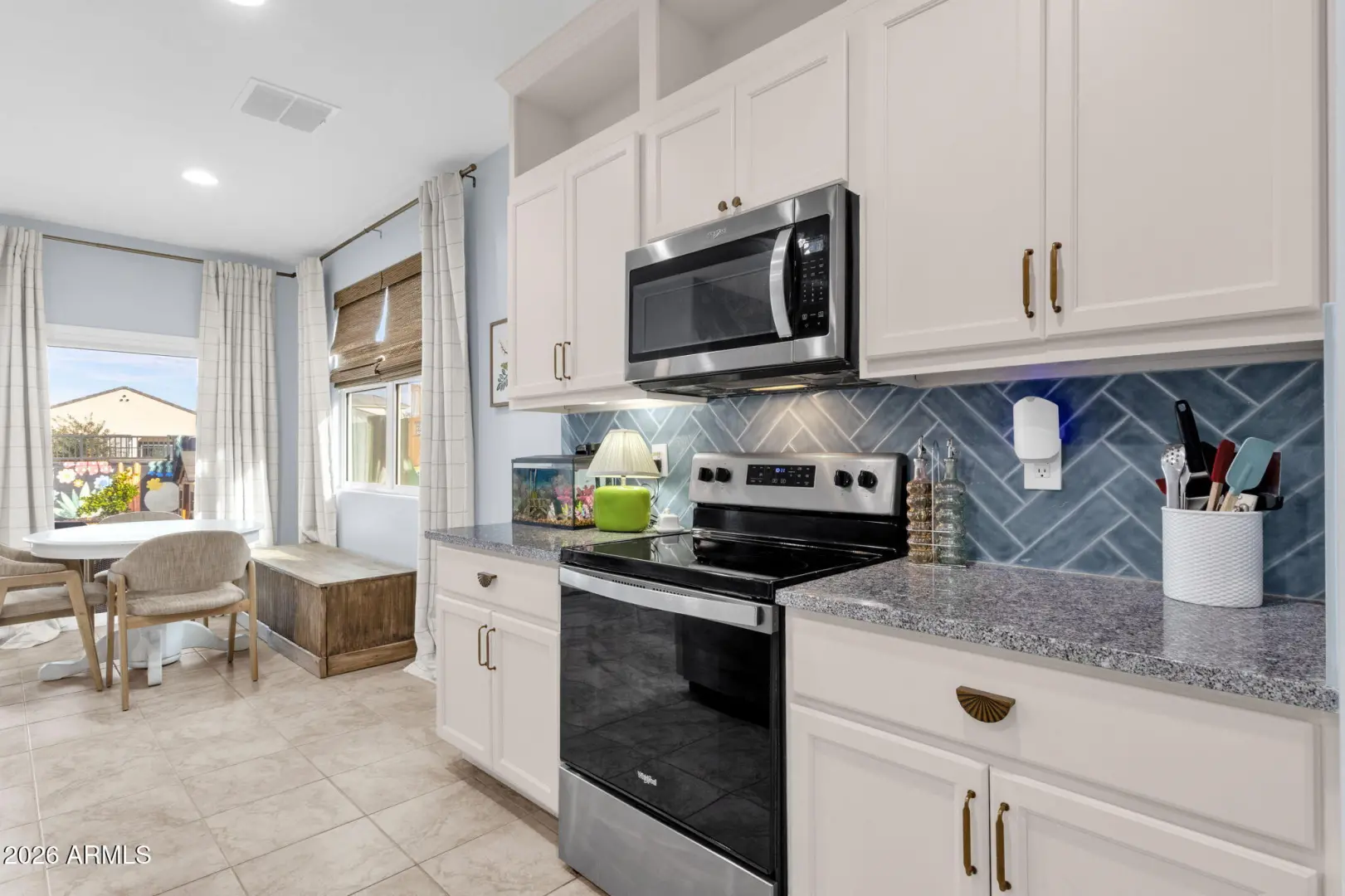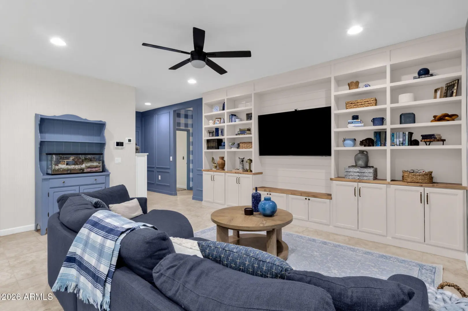 Better Than New! Built in 2023 & completely move-in ready, this highly upgraded 3 bed, 2 bath home offers everyday comfort in this sought-after community. No neighbors directly behind you! The open-concept floor plan features a chef-inspired kitchen w/stainless steel appliances, a center island, extended custom cabinetry and modern backsplash, plus a dedicated dining area, perfect for entertaining. The spacious living room showcases a custom media wall, creating a stylish gathering space. Numerous upgrades include custom interior paint, guest room day bed/built-in, added closet and laundry organization. The dream garage stands out with RaceDeck flooring, custom paint, and mounted storage. Step outside to a beautifully landscaped backyard w/an extended patio, custom desert mural, scenic