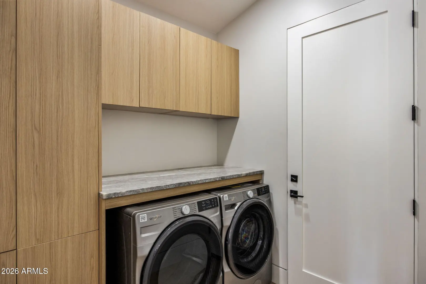 Experience modern Arcadia living in this newly built residence defined by clean architecture, warm natural materials, with seamless indoor outdoor flow. A crisp stucco façade, custom pivot entry door, and glass garage door create a striking first impression, while curated desert landscaping and structured turf accents deliver low maintenance curb appeal. Inside, soaring ceilings and engineered white oak flooring set a warm, contemporary tone. The open great room is designed for effortless living, with a wall bi folding glass doors that open to the covered patio and private lawn space. The chef's kitchen pairs modern functionality with organic warmth, featuring custom wood cabinetry, a marble waterfall edge island, built-in refrigeration...