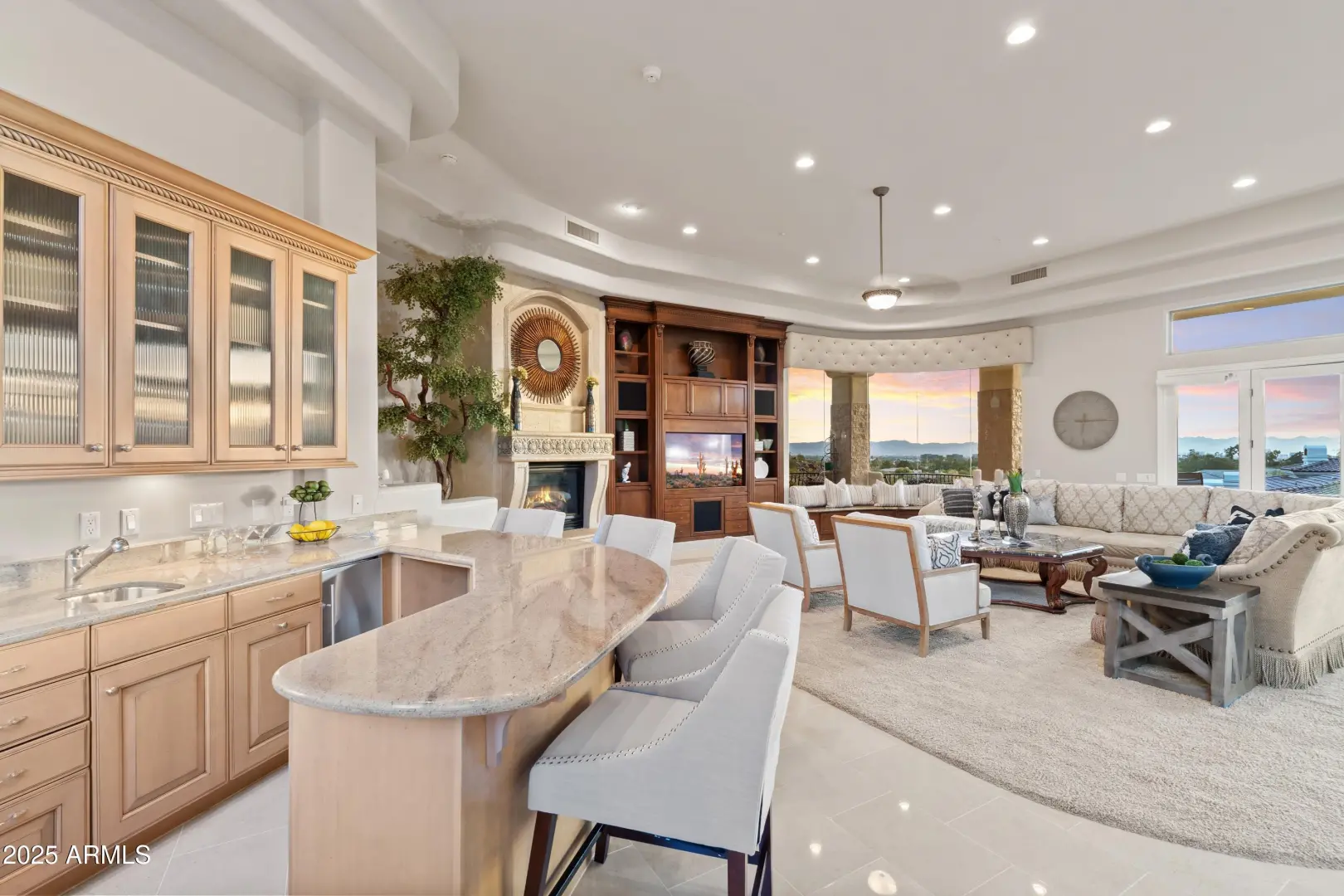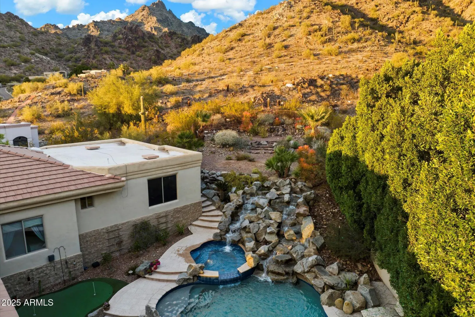 Tucked within the secluded Guard Gated Biltmore Hillside cul-de-sac on a north-south facing lot capturing sweeping City Lights, near 'N' far mountains and vistas, seamlessly blending indoor with outdoor living while illuminating lush desert landscaping and manicured green spaces. This Mediterranean-inspired estate offers a rare blend of timeless sophistication and resort-style living. Backing directly to the Phoenix Mountain Preserve, the residence is enveloped in natural beauty, creating a serene oasis designed for both luxurious comfort and effortless entertaining. Outdoors, the property unfolds into a resort-like sanctuary: a sparkling pool and spa, tranquil water feature, outdoor fireplace, and expansive covered patio set the stage for unforgettable gatherings beneath Arizona's